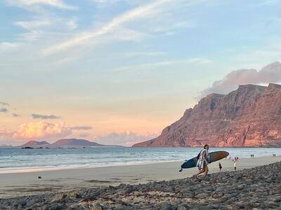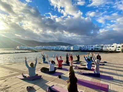 Whether you’re just catching your first green waves or looking to level up your surfing, we’ve got your back. Our vibe is all about good people, great spots, and having a blast in the water. Here in Famara the sun shines most of the year, the waves are fun for all levels, and the beach lifestyle is real: welcome to your surf and yoga home! 🏖️🌞