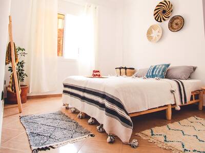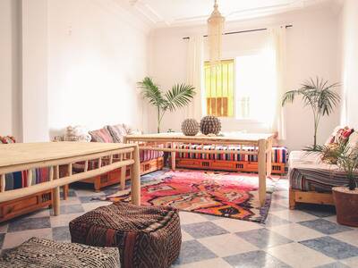 You will find yourself in a typical designed Moroccan Riad with beautiful chosen decorations, wide open spaces, roof tops with amazing view all over the ocean and the stunning landscape, comfortable rooms for your pleasant stay and a great kitchen with home cooked, typical Moroccan food.