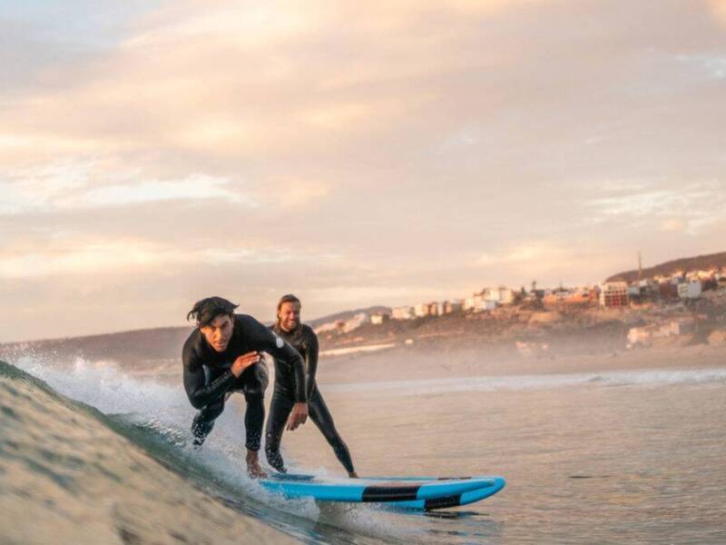 Our beautiful surf & yoga home is in the upper part of the village and has therefore a great 180° panoramic view along the coast and it‘s surfspots – from km 11 till Taghazout. Our 11 rooms with private bathrooms will provide you enough personal space to rest and unwind. While the community areas invite to connect and make new friends: an amazing rooftop to relax after the surf sessions with coffee, tea, smoothies and homemade cakes or to watch the sunset over the ocean, a generously dining and lounge area on the ground floor to enjoy our healthy surfers & yogi breakfast as well as delicious dinners which are a blend of typical Moroccan dishes as well as Mediterranean and modern cuisin.