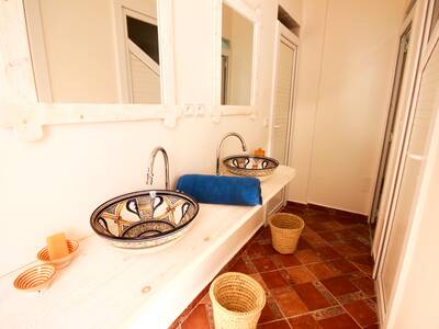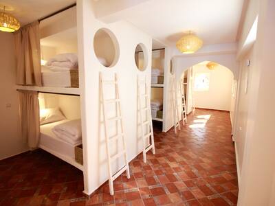 Our House is the tipical Moroccan one but with all the facilities that a surfer can dream with and the most important, just in front of the waves! :) We have 4 rooms, 3 of them are shared rooms with bunk beds and the other is private room with a double bed. The common areas are the kitchen, the living room and the amazing terrace, all of these area with incredible sea view.