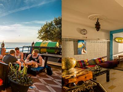 The atmosphere in the Surf Camp Morocco is relaxed. This is ensured by the cozy seating areas and a limited number of a maximum of 22 guests. For dinner, all guests come together on the rooftop terrace, enjoying the sunset, food and a cool drink. From time to time also BBQs and open-air movie nights will be organized on the rooftops looking over the surfer town.