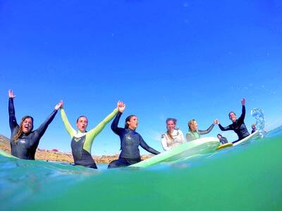 - Fully equipped surf school with every shape and size of board to get you standing up and surfing