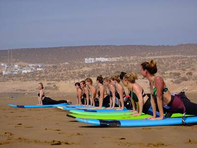 Sunshine Surf Morocco is a surf camp based in Taghazout Bay 14km north of Agadir. The area is known for having some of the best surf spots in the region. A great place to discover the southern coast of Morocco, and enjoy the surf. Located just a few minutes away from the beach, Sunshine Surf Morocco is a surfcamp offering surf, stand up paddle board and bodyboard guiding open to all surf lovers, beginner to advanced. We offer surf lessons as a group or for individuals, surf training/guiding with or without surf accommodation.